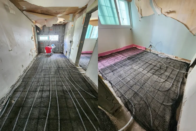 베란다 보조주방 급배수관 신설분배기 교체 및 이설보일러 난방배관 신설수도배관 신설세면대 매립수전샤워 매립수전욕조 매립수전젠다이 신설