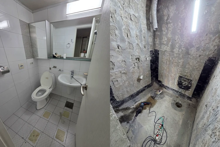 기존 입구쪽 자리에서 안쪽 끝자리로 이동 기존 수도가 옹벽안에 있어 거실에서 끌어옴